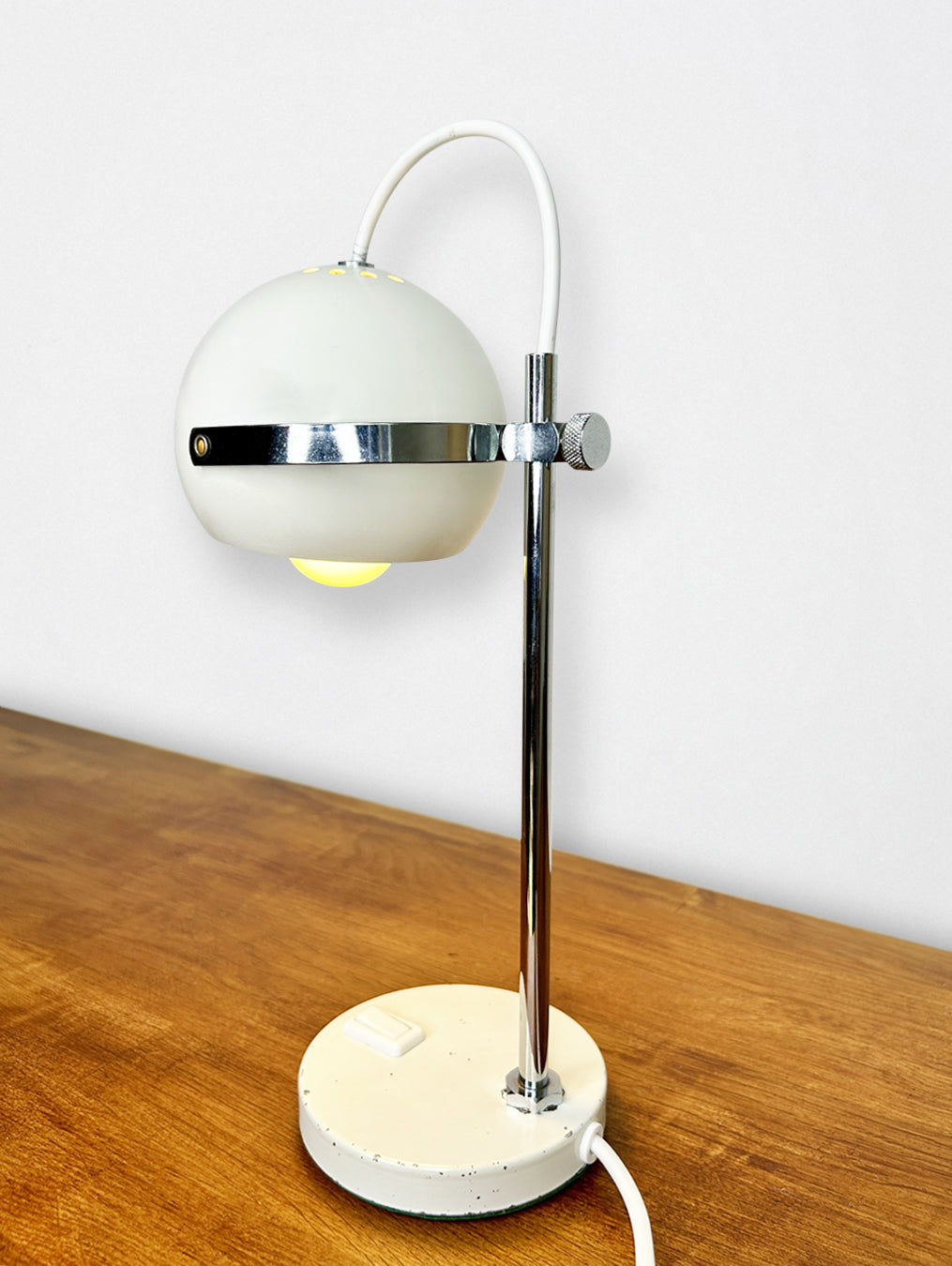 Small Eyeball table lamp from the 1970s, beige in color, in good overall condition! Fits all interiors, nice lighting.