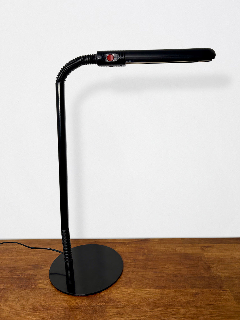 Neon tube, graphic and architectural line, heavy black lacquered metal base and very stable.