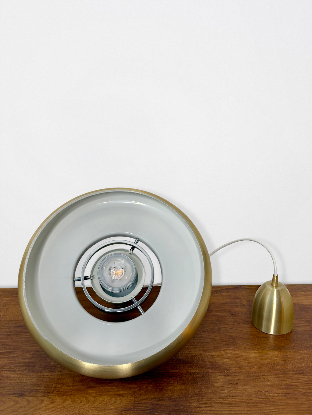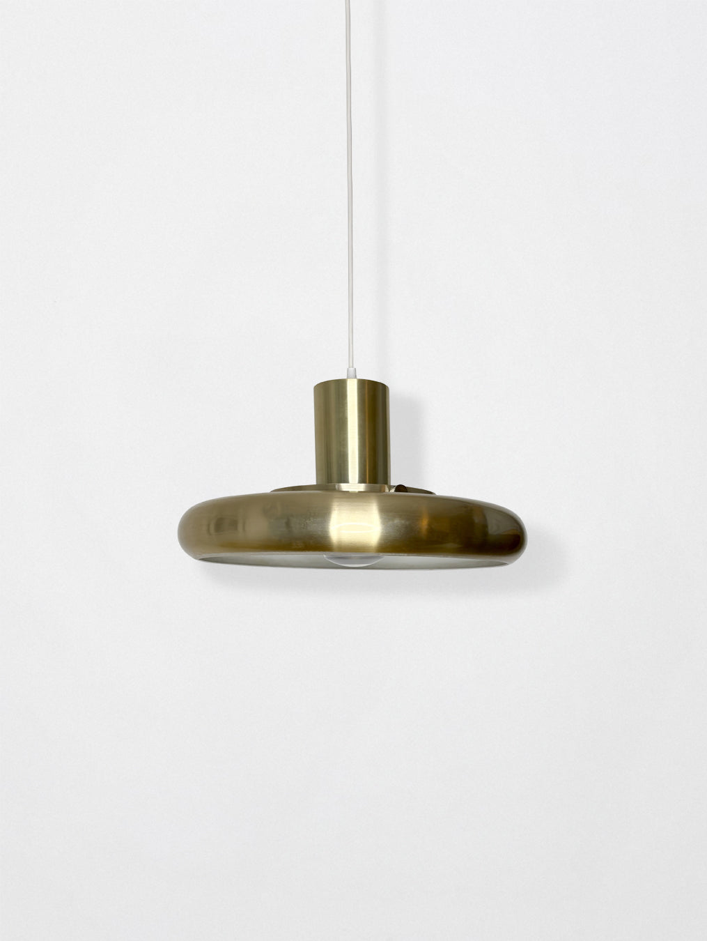 Danish pendant light from the 1970s, gold/champagne color, fully restored. (Some marks/scratches are present)